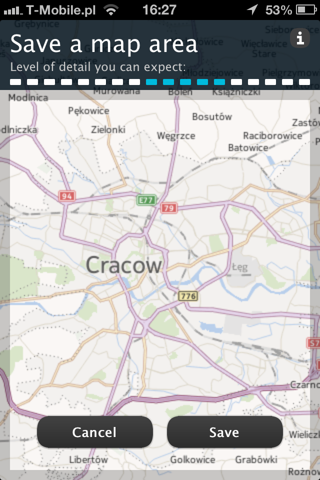Aplikacja posiada podstawową funkcjonalność dla tego typu programów, jednak jedną z ciekawszych opcji, jest możliwość zapisu wybranego fragmentu mapy, dzięki czemu jest on dostępny w trybie offline. To zdecydowanie najciekawsza funkcja, dla której warto pobrać i przetestować aplikację.