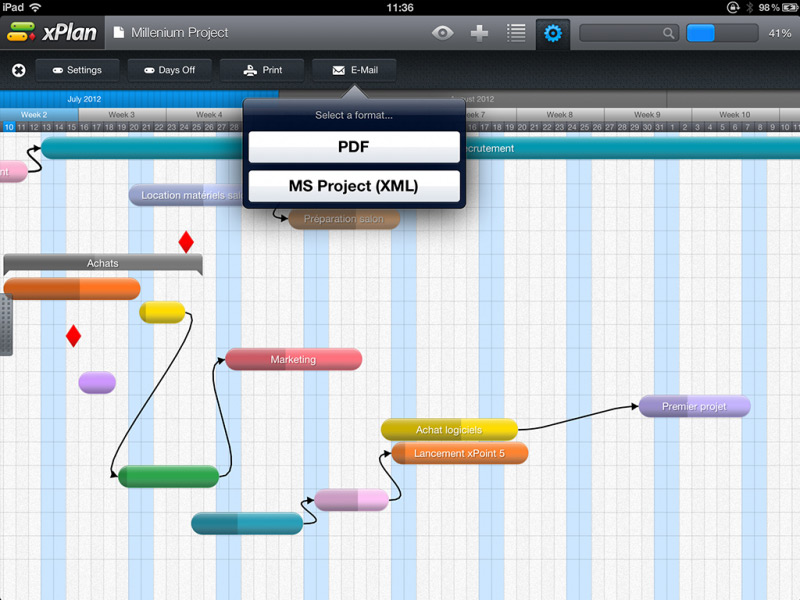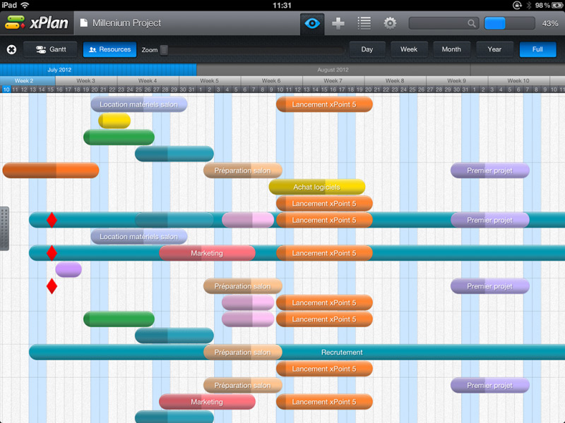 Wykres Gantta umożliwia graficzną prezentację naszych projektów, w tym zadań, zasobów, daty rozpoczęcia i zakończenia, kamieni milowych, itd. xPlan pozwala na bardzo skuteczne zarządzanie nawet najbardziej skomplikowanymi projektami. Do tego jego użytkowanie jest intuicyjne, a oprawa graficzna bardzo ładna.