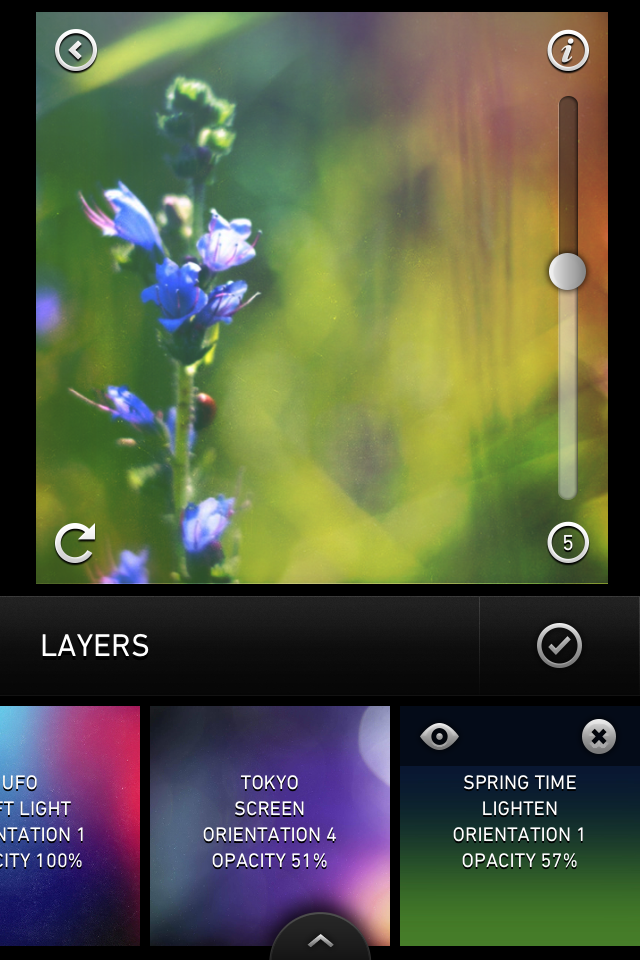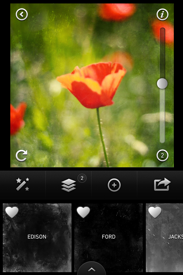 Co istotne, do każdego zdjęcia możemy wybrać kilka tekstur, które nakładane są na kolejnych warstwach. Ich kolejność możemy dowolnie zmieniać, tak jak i ich przezroczystość, i sposób nakładania na niższe warstwy. Dodatkowo możemy je obracać co 90 stopni.
