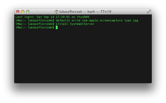 Aby zmienić domyślny format zrzutu ekranu, z .png na np. .jpg, również musimy posłużyć się Terminalem.
