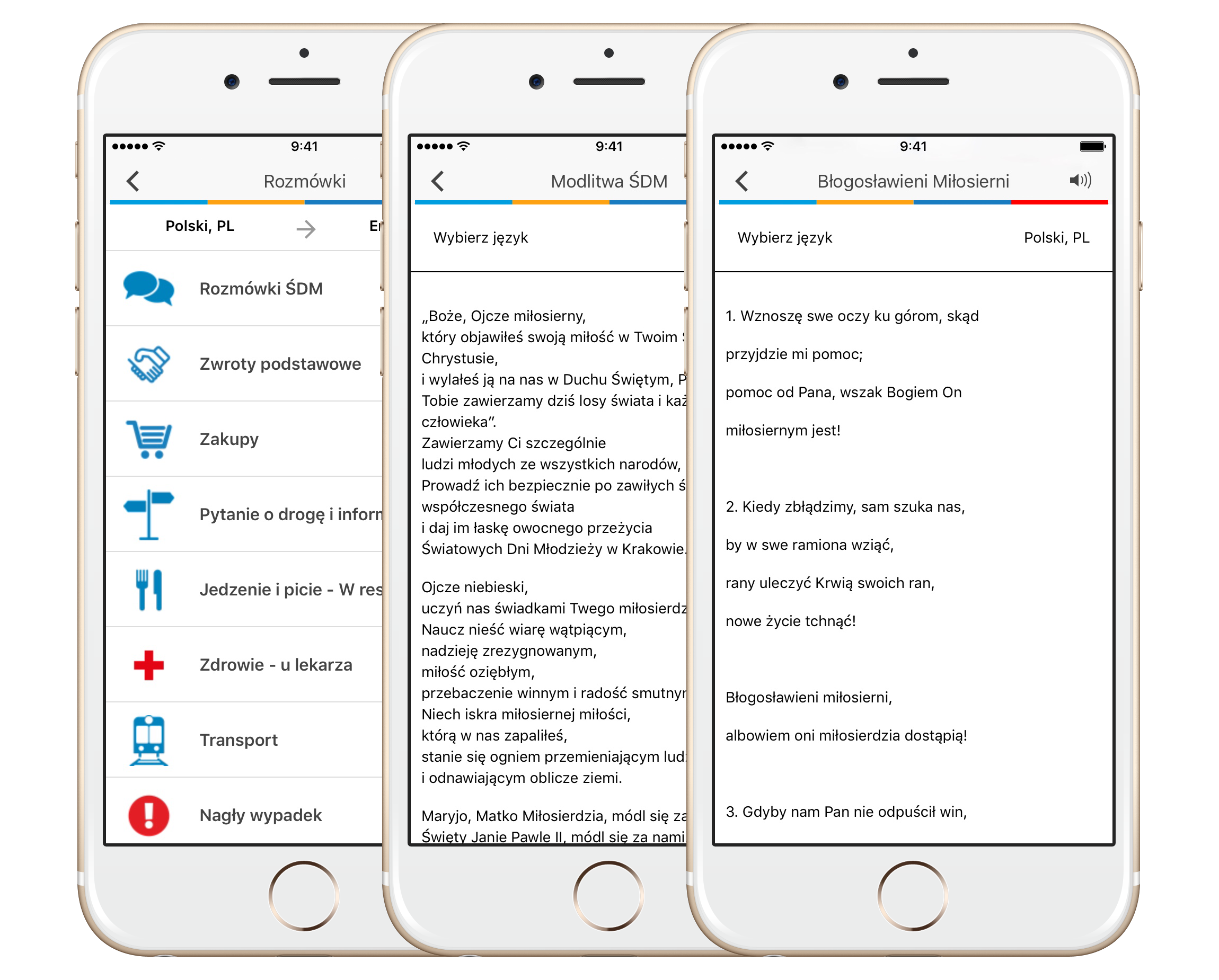 Nie możemy też zapomnieć o oficjalnej apce ŚDM – Pielgrzym. Dzięki niej możemy bardzo dużo zdziałać, np. być na bieżąco z oficjalnymi komunikatami i wydarzeniami, uzyskać dostęp do rozmówek w 9 językach, numerów alarmowych, przewodnika po miejscach wydarzeń, instrukcji pierwszej pomocy, modlitw czy rozkładu komunikacji miejskiej.